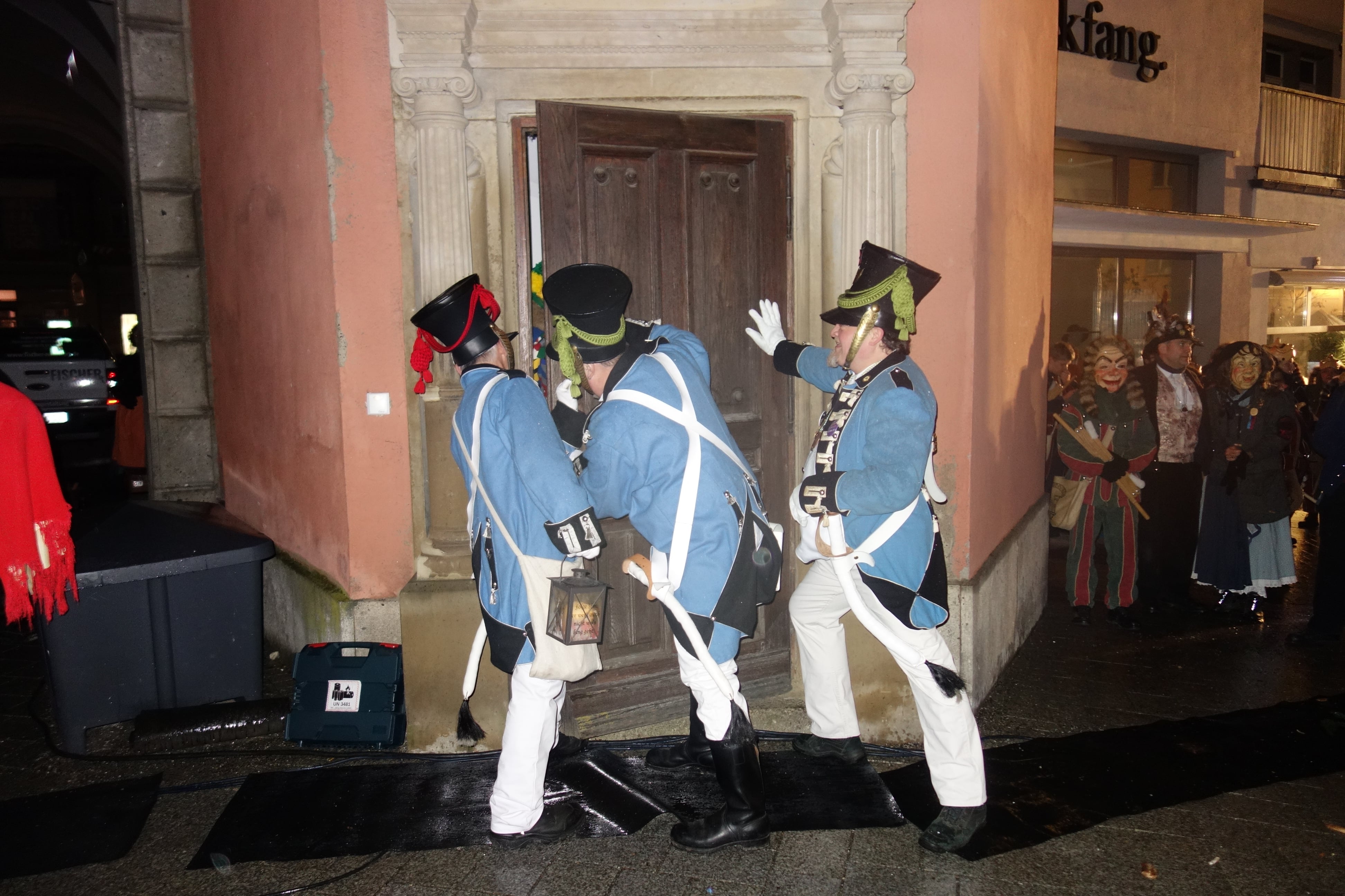 Da sammelte sich ein illusteres Völkchen vor dem Ravensburger Obertor: Befreundete Zünfte, Musiker und unsere Hästräger, damit die Hauptfasnet endlich richtig durchstarten kann.