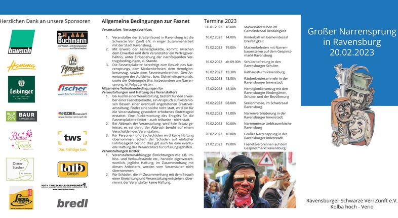 Fasnetsflyer zum Narrensprung in Ravensburg 2023